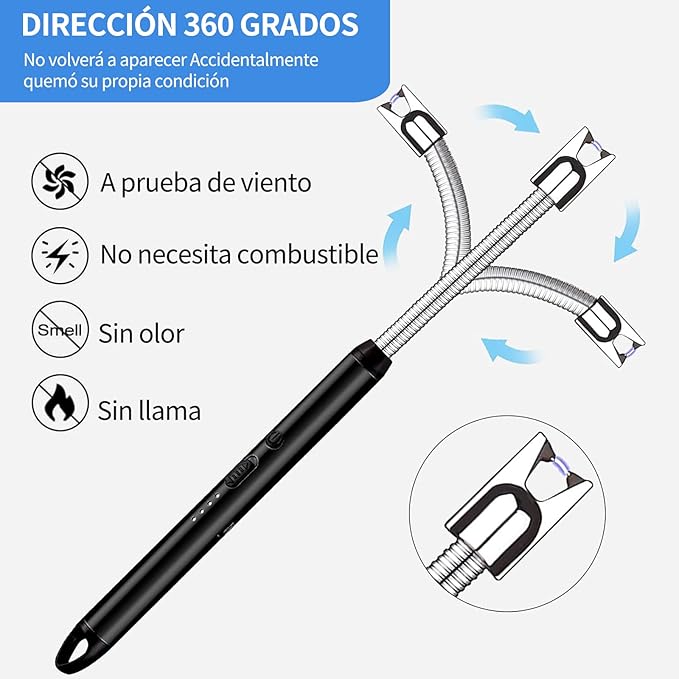 【Fácil de Transportar】El encendedor de arco con tecnología de plasma sin llama protege el impulso eléctrico de ser extinguido por fuertes vientos o tiempo húmedo, asegurando un fácil uso en cualquier condición climática. El diseño ligero hace que el encendedor fácil de llevar, ideal para barbacoas, camping de viaje, senderismo, velas, cocina, chimeneas, fuegos artificiales y otras actividades.